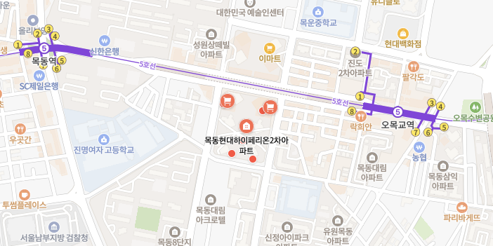 - 목동역 (5호선): 도보 8분 거리 (509m)